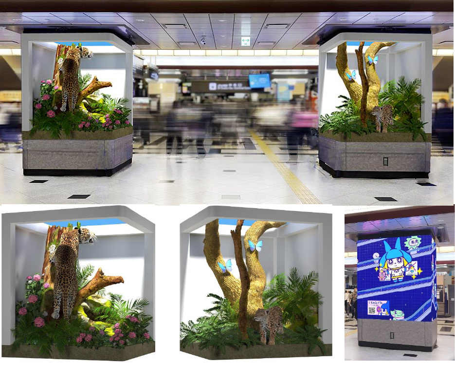 多くのお客様でにぎわう大阪・関西 で‥ヒョウ「アカツキ」が、「うちゅみざわ」が、おでむかえ!!大阪駅中央口柱巻きLEDビジョンで放映開始