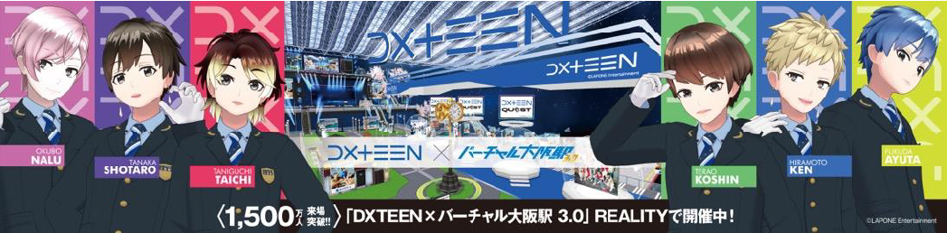 西日本旅客鉄道株式会社(本社:大阪市北区、代表取締役社長:長谷川 一明)、株式会社JR西日本コミュニケーションズ(本社:大阪市北区、代表取締役社長:伊藤 義彦)、株式会社JR西日本イノベーションズ(本社:大阪市北区、代表取締役社長:川本 亮)は、REALITY XR cloud株式会社(本社:東京都港区、代表取締役社長:春山 一也 グリー株式会社100%子会社)と共に、JO1、INIが所属するLAPONEエンタテインメント発の6人組ボーイズグループ「DXTEEN」が1ST ALBUM『Quest』を発売するのに合わせて、2024年6月26日より「バーチャル大阪駅 3.0」とのコラボレーションプロジェクトを行っております。この度、そのイベント内容の詳細が決定いたしましたのでお知らせいたします。