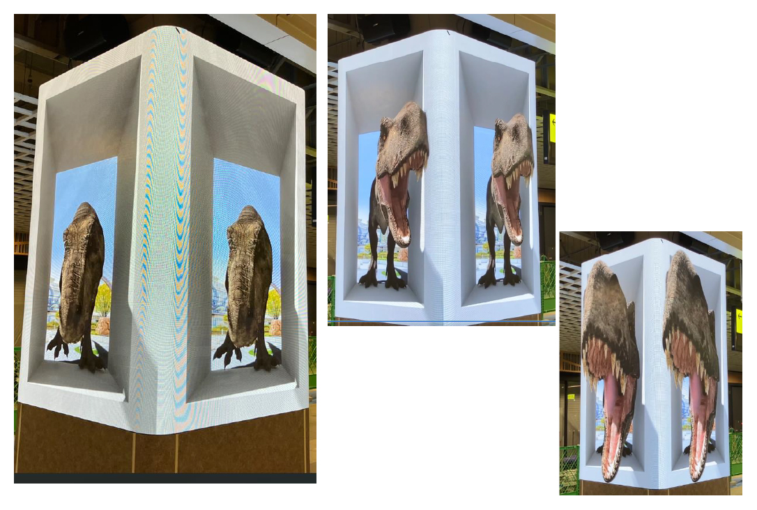 北陸エリア初の大型柱巻LEDビジョン誕生!! ―ハピラインふくい福井駅コンコースに3D恐竜T-REX登場―
