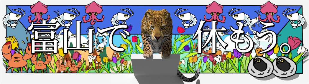 コロナが落ち着いて賑わう今、そんな人気者・ヒョウ「アカツキ」が、富山県とコラボして、富山県の雷鳥、ブリ、白エビ、ホタルイカ、カニ、チューリップ、黒部峡谷トロッコ電車、日本海、と富山県を代表する美食&絶景をご紹介しています。