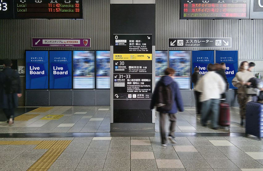 株式会社JR西日本コミュニケーションズ(本社:大阪府大阪市、代表取締役社長 伊藤 義彦 以下、JR西日本コミュニケーションズ)と、株式会社 LIVE BOARD(本社:東京都渋谷区 代表取締役社長 田中 淳泰 以下、LIVE BOARD)は、JR西日本コミュニケーションズが運用・管理する「京都駅橋上北壁面」、「J・ADビジョンWEST大阪駅西口デジタルサイネージ」、「博多駅デジタルサイネージ よかろうもん!9面セット」を、2026年5月11日(月)よりLIVE BOARDマーケットプレイスへ接続・連携します。
