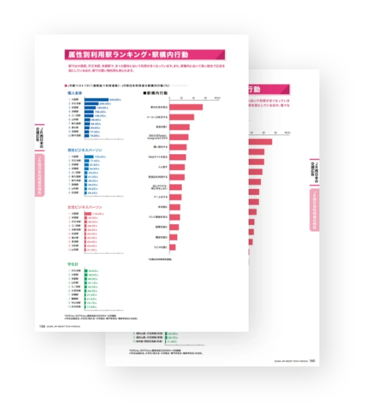 新幹線・在来線の利用者数や属性、移動傾向などをまとめた交通データです。
