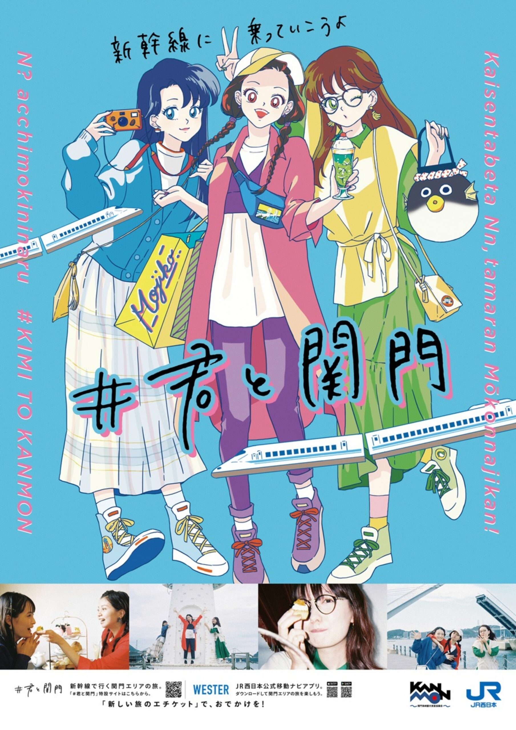 F1層に向けた関門エリアの魅力発信&鉄道利用促進プロモーション。「エモい」≒「昭和レトロ」をビジュアルのコンセプトとし、第1弾は関門エリアのレトロな街並みや「映える」スポットなどで自由な旅を楽しむイメージで構成しました。”昭和感”を演出する手法として写真は全てフィルムカメラで撮影し、あえて粒子の粗さの目立つ素材やピントの合っていない画像などを使用しています。第2弾は”ニューレトロ”をコンセプトに、第1弾で起用したモデルを70~80年代のアニメタッチに書き起こしたビジュアルを制作し、駅メディアやWEB等で展開しました。