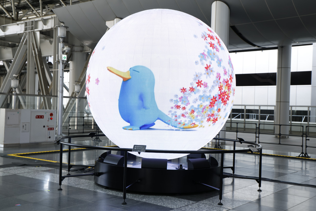 大阪・関西万博を契機とした「駅空間を活用した取組み」として、大阪駅、京都駅、広島駅に球体LEDビジョン “LINQ VISION” を設置いたしました。大阪駅には屋外用球体LEDビジョンでは日本最大級となる3m、京都駅・広島駅には1mの球体LEDビジョンを設置し、球体という特殊なフォルムを活かした没入型コンテンツに加え、センサーで体験者の位置を感知し映像がリアルタイムに反応する仕組みや、二次元コードを読み込むことでスマートフォンを使った双方向インタラクション機能を搭載。LINQ VISIONでしかできない体験価値を提供いたしました。